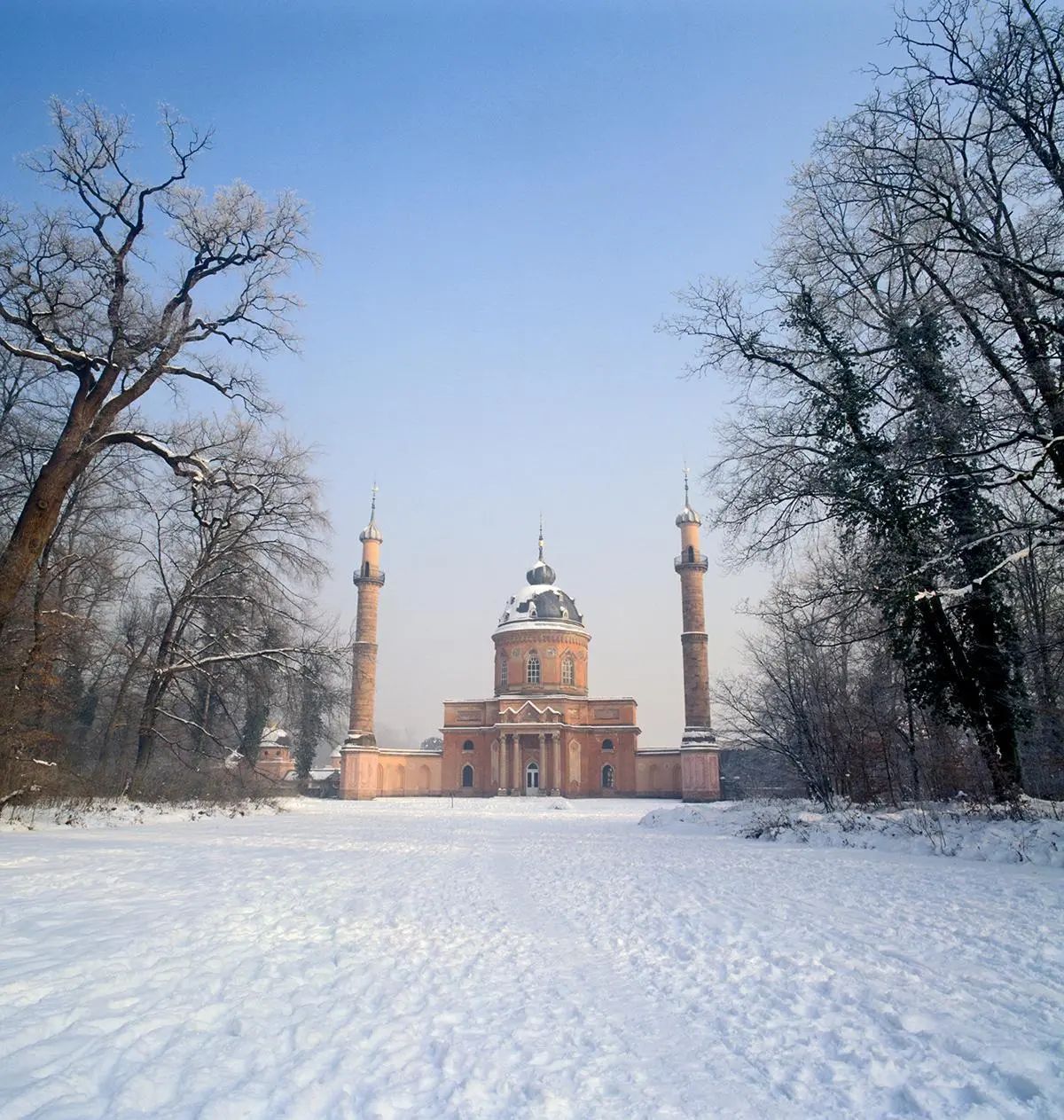 Die Moschee im Winter: Schlossgarten Schwetzingen.